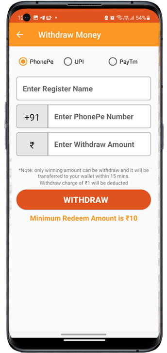 You can withdraw your prize money at any time in your chosen option like PayTM, UPI, etc.